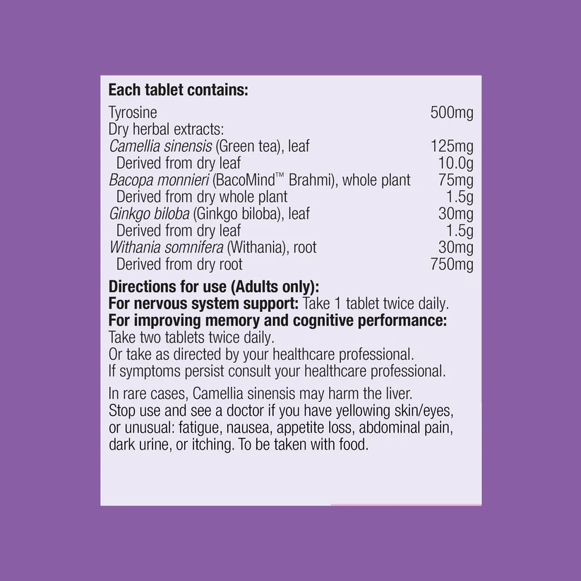 - Combines the traditional Ayurvedic herbs Brahmi and Withania to assist with memory, stress and mild anxiety